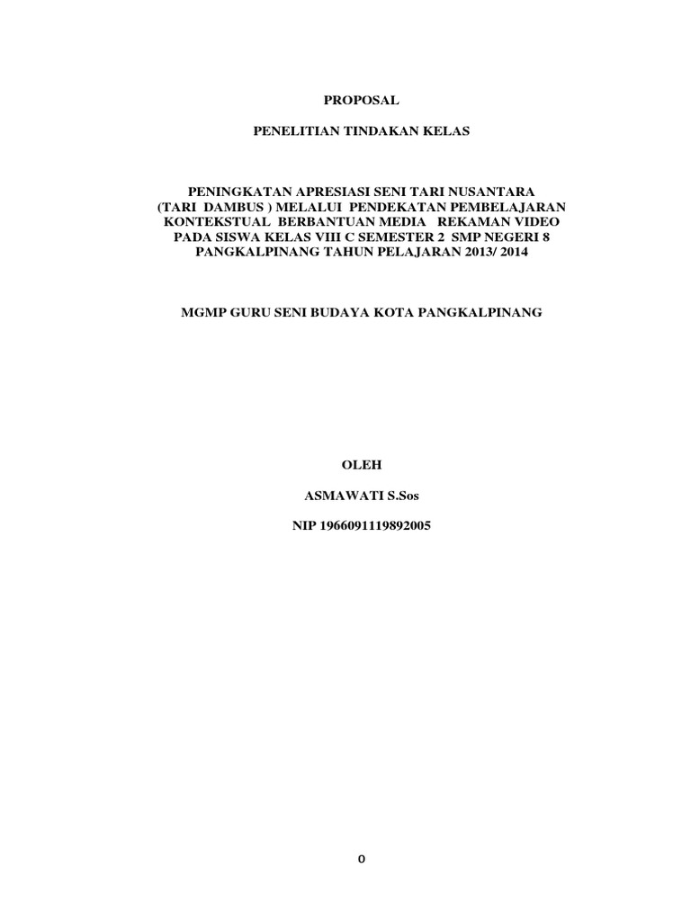 Penggunaan Model Pembelajaran Tutorial Sebaya untuk Meningkatkan Kualitas Proses dan Hasil Belajar Tari Remo Siswa Kelas VIIIB SMP Negeri 50 Kertosono - Nganjuk TUJUAN PENELITIAN 1. Contoh proposal PTK Penelitian Tindakan Kelas PAUD TKRA SDMI SMP SMUSMASMK sederajat Semua materi pelajaran. Eksplorasi Pola Lantai Tari Tunggal 14 B.