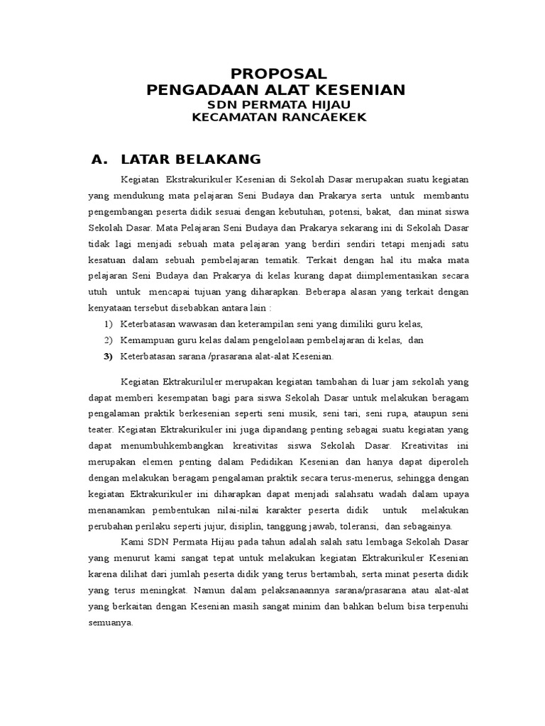 Doc Contoh Proposal Permohonan Dana Pengadaan Alat Kesenian Adi Mustiadi Academia Edu