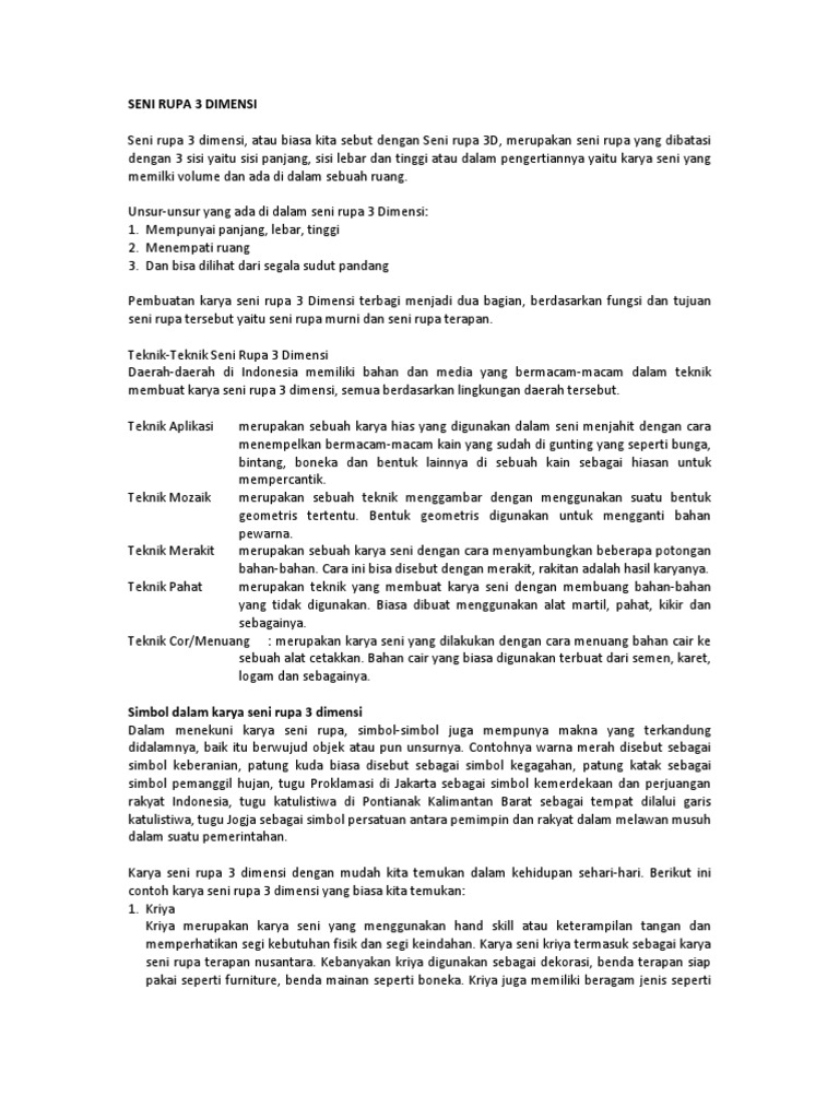 Teknik Unsur Dan Teladan Seni Rupa 3 Dimensi Materi Pelajaran Terbaru