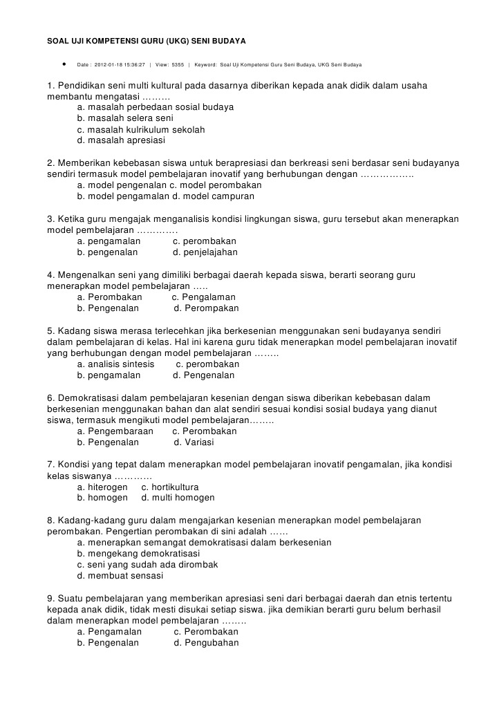 Contoh Soal Ukg Seni Budaya Smp Cute766