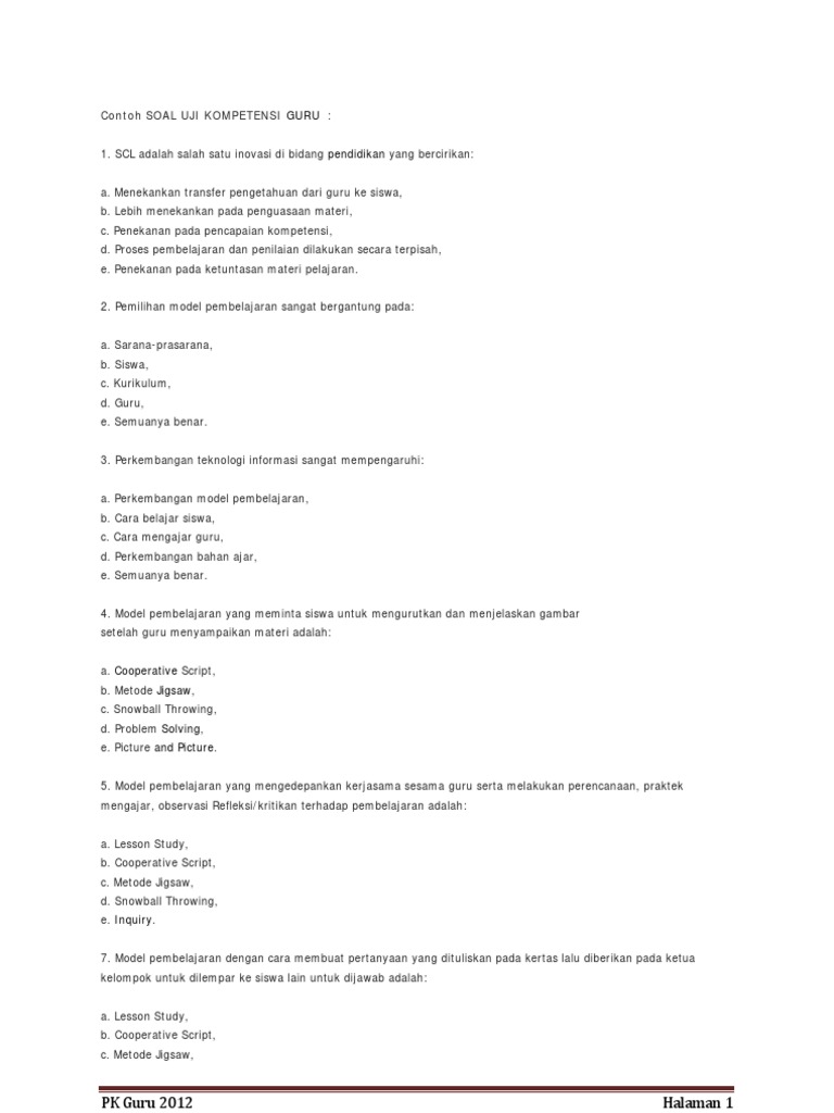 Contoh Soal Uji Kompetensi Guru Ukg